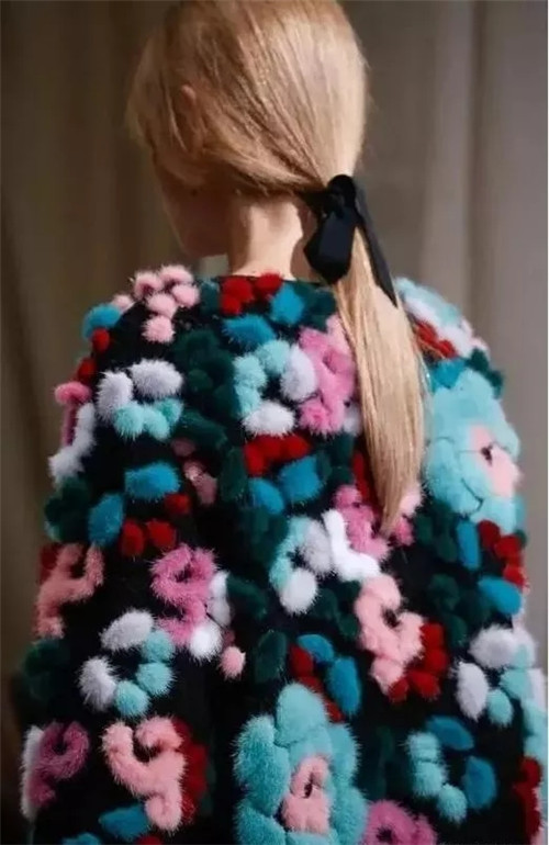 比如:当下比较流行的花卉镶嵌,将皮草镶嵌在剪绒水貂上,也可以结合一定的贴花工艺,这样花卉便会变的栩栩如生。